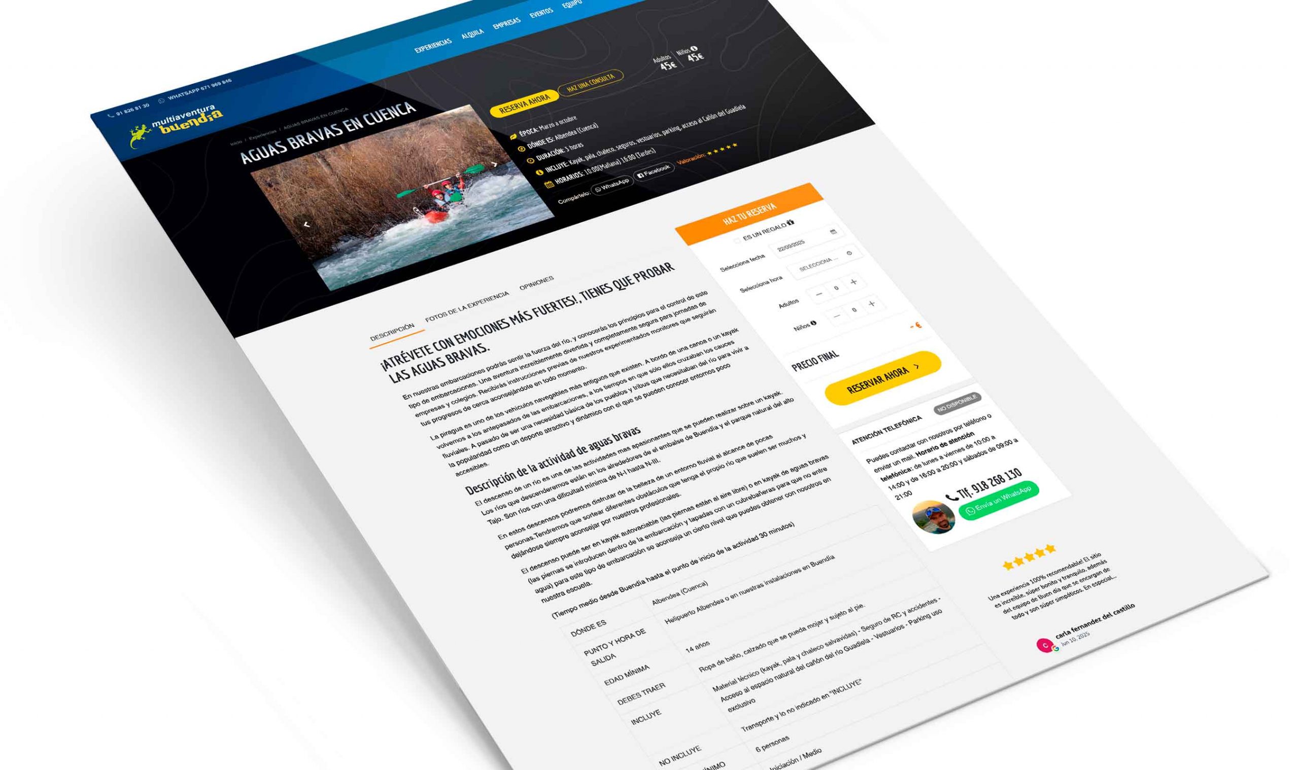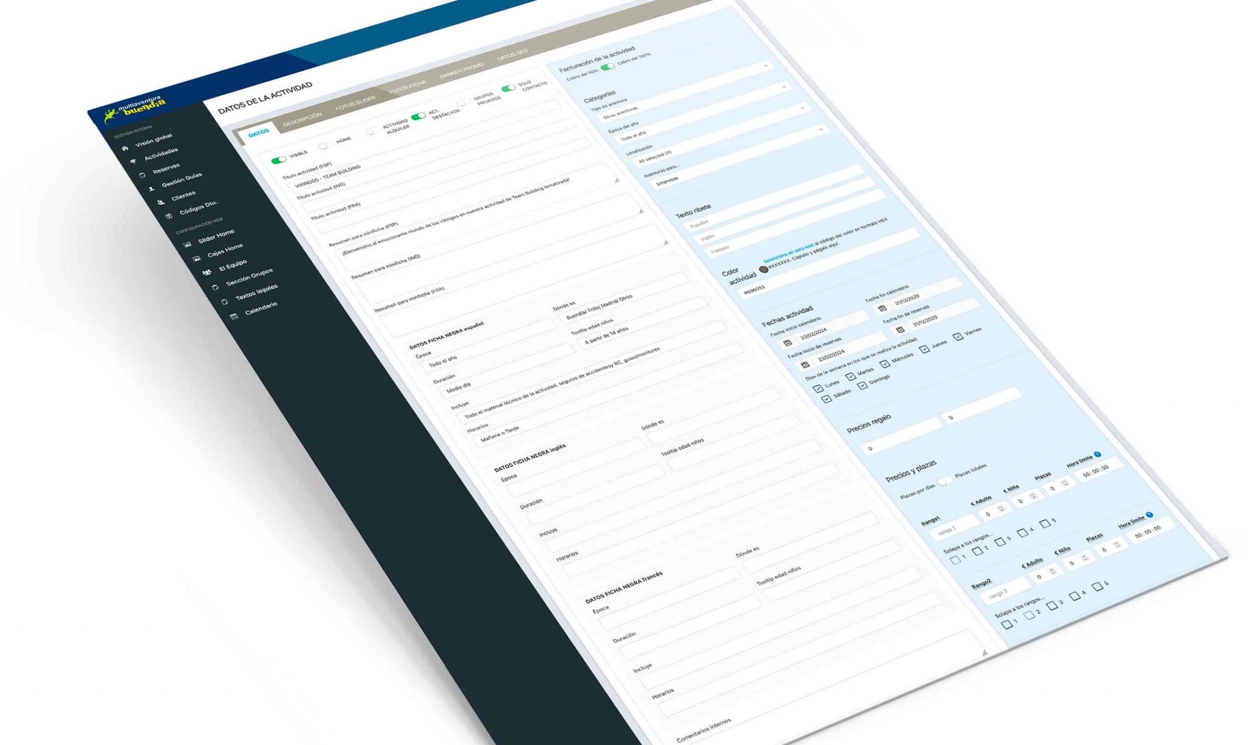 - Área privada para gestionar contenidos, reservas, actividades, gestión de guías, clientes, códigos descuento, etc…